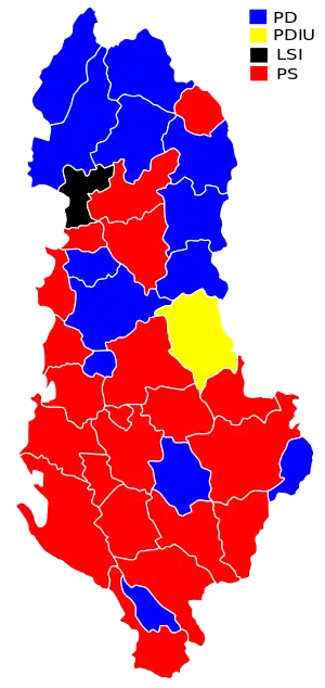 TiranaLulzim Basha (49.74%)Edi Rama (49.70%)Coalition for the Citizen53.01%