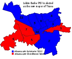 Tirana 11Haki Mustafa (55.45%)Naim Asllani (44.55%)Coalition for the Citizen55%
