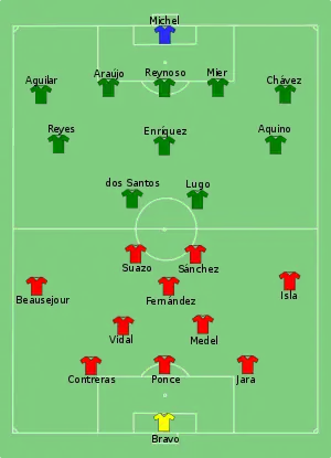 Chile won the group and faced Venezuela—the runners-up of Group B— in the quarter-finals. Uruguay finished second and faced Argentina—the runners-up of Group A—in the quarter-finals. Peru finished third in the group and also as the best third-place finisher in the first stage. They faced Colombia—the winners of Group A—in the quarter-finals. Mexico were the only team from the group to be eliminated in the first round.