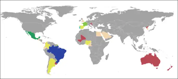 In addition to host nation Colombia, 23 nations qualified from six separate continental competitions.