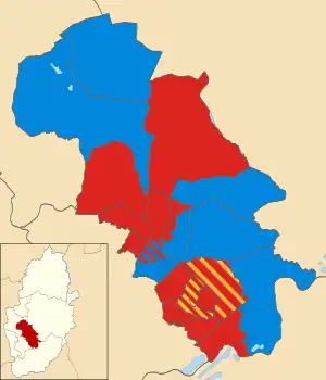 The results saw Labour gain control of the council from the Conservatives, after taking 13 seats from the Conservative party, 5 from the Liberal Democrats[4] and all 5 independent seats.[3] This left Labour with 32 seats, compared to 15 Conservatives and 3 Liberal Democrats.[3] Overall turnout in the election was 45.3%.[5]