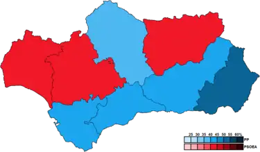 ![]() Constituency results map for the Parliament of Andalusia | |||||||||||||||||||||||||||||||||||||||||||||