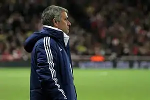 On 3 June, Chelsea announced that former manager José Mourinho had been appointed as the new manager for the 2013–14 season. He signed a four-year contract with the Blues, up to the end of the 2016–17 season. He was re-united with former squad members John Terry, Frank Lampard, Ashley Cole, John Obi Mikel, Petr Čech, Henrique Hilário and Michael Essien whom he brought back from his loan spell at Real Madrid. Mourinho also brought three coaching staff members with him to Stamford Bridge in Rui Faria, Silvino Louro—both of whom had worked at Chelsea under Mourinho's previous tenure—and José Morais. Mourinho was officially announced to the media on 10 June and took charge of the team on 1 July for the pre-season.[1] One of Mourinho's first games was against Barcelona rival Pep Guardiola, as he managed 2012–13 UEFA Champions League winners Bayern Munich in the 2013 UEFA Super Cup at the Eden Arena in Prague.[2] In Mourinho's first official interview back, he referred to himself as "The Happy One" in regards to his appointment as the new Chelsea manager, having called himself "The Special One" during his first tenure.[3]