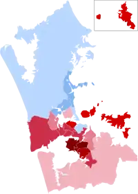 | Whau | Whau | 8,676 | 50.99 | 3,949 | 23.21 | 743 | 4.37 | 660 | 3.88 | 696 | 4.09 | 2,292 | 13.47 | 17,016 | |