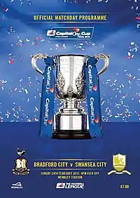 Bradford City, of League Two, were appearing in their first major cup final since they won the 1911 FA Cup Final, and were the first fourth-tier side to reach the League Cup final since Rochdale in 1962.[4] Swansea City, of the Premier League, were appearing in their first major English cup final in their 101-year history.[2][5]