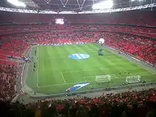 Swansea won the match 5–0, and qualified for the 2013–14 UEFA Europa League, entering in the third qualifying round.[6][7] Although based in Wales, their participation in the English football league system means they took one of the English berths in the competition.[8] It was the first time the League Cup had been won by a non-English club and the first time a major English cup had been won by a non-English club since Swansea's rivals Cardiff City won the FA Cup in 1927.[9]