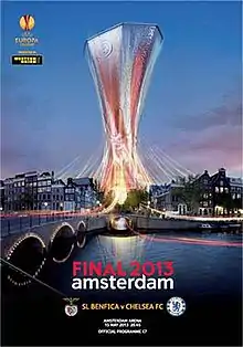The 2013 UEFA Europa League Final was the final match of the 2012–13 UEFA Europa League, the 42nd season of Europe's secondary club football tournament organised by UEFA, and the 4th season since it was renamed from the UEFA Cup to the UEFA Europa League. The match was played at the Amsterdam Arena in Amsterdam, Netherlands, on 15 May 2013,[6] between Portuguese side Benfica and English side Chelsea. Chelsea won 2–1 to secure their first title in this competition.[7]