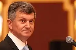 In mid-October 2014 the SDP-led government proposed adopting a new electoral law by February 2015. SDP's parliamentary speaker Josip Leko stated that the party's position in consultation with the Venice Commission was that the electoral law should not be changed within a year prior to an election.[3] However, the new Law on the Election of the President of the Republic of Croatia was subsequently voted in by the SDP-led parliamentary majority on 24 October.[4] The opposition Croatian Democratic Union (HDZ) walked out on the vote criticizing the timing, while most of the parliament's minority representatives voted against the law due to a lack of consultation of parliamentary groups.[5] The SDP's Peđa Grbin, head of the parliament's constitutional committee jeered the opposition: "I understand why my colleagues from HDZ are opposed, since they won't have to wait until midnight to find that they've also lost these elections" - ostensibly in reference to a part of the law which shortened the electoral silence from midnight on election day to the closing of the polls.[5]