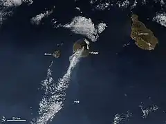 The 2014–2015 eruption of Fogo began on 23 November 2014, continuing until 8 February 2015. It was the first eruption of Pico do Fogo in 19 years, and the longest since its 1857 eruption. It had a Volcanic Explosivity Index of 3, making it the largest eruption of the volcano since records began.[1]