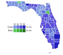 ![]() County results Scott: 40–50% 50–60% 60–70% 70–80% Crist: 40–50% 50–60% 60–70% 70–80% | ||||||||||||||||||||