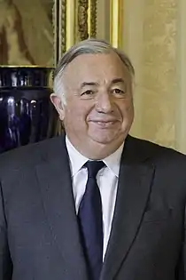 Gérard Larcher first ran for the position of president of the senate in 2008, in which he was nominated against former prime minister Jean-Pierre Raffarin.[19] Larcher won, receiving 173 votes.[20] Jean-Pierre Bel received 134 votes, and other UMP candidates René Garrec and Jean-Pierre Raffarin received 19 and 2 votes respectively.[20] In the 2011 senate election, the Socialist party and their allies won 177 seats, compared to 171 won by the right and centre-right.[21] The loss of the senate to the left preceded Larcher's eventual removal from the position of Presidency.[21]