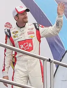 Dale Earnhardt Jr. took the lead from Brad Keselowski with five laps to go and took the checkered flag.[18] He inherited the lead after Keselowski dropped back to try to remove the piece of trash on his grill. "That's unfortunate for him," Earnhardt said. "He had me beat. I couldn't get to him. It's real hard to pass here. I've lost some in strange ways. It feels good to win one like that. Brad definitely had the better car. I'll own up to that, but we won the race." Keselowski stated that his car "was running really hot" and that he thought it "was going to blow up".[19]