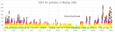 - ↑ "China moves to ensure clean air for military parade". Xinhua News Agency. Archived from the original on 2015-09-19. Retrieved 2015-09-17.