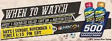 - 1 2 3 4 5 6 7 8 9 10 11 12 13 14 "2015 Goody's Headache Relief Shot 500". Sprint Cup Series. Season 67. Ridgeway, Virginia. November 1, 2015. Event occurs at 1:24 p.m. NBC Sports. NBCSN. Retrieved November 9, 2015.