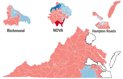 FairVote criticized the election results as demonstrative of Republican gerrymandering and the failures of winner-take-all voting.[18] Stephen J. Farnsworth, a University of Mary Washington described the election in The Washington Post as a "tribute to gerrymandering," highlighting the lack of competitive races.[19] The Democratic Party of Virginia framed "Democratic gains" in the House as having successfully "bucked the national trend as both a Southern state and presidential battleground state."[2]