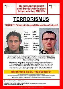 - ↑ GmbH, Frankfurter Allgemeine Zeitung (21 December 2016). "Nach Attentat in Berlin: Öffentliche Fahndung nach verdächtigem Tunesier". FAZ.NET (in German). Retrieved 21 December 2016.