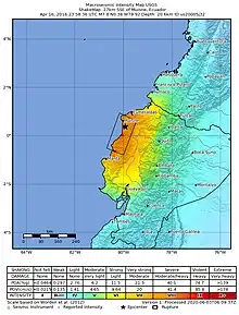 - 1 2 3 4 5 6 7 "M7.8 - 27km SSE of Muisne, Ecuador". United States Geological Survey. April 17, 2016. Archived from the original on April 18, 2016.