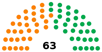All 63 seats in the House of Representatives 32 seats needed for a majority | ||||||||||||||||||||||||||||