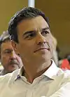 Pedro Sánchez, a member of the PSOE unknown to the public and much of the party membership, succeeded Alfredo Pérez Rubalcaba as Secretary General of the Spanish Socialist Workers' Party on 26 July 2014 party extraordinary congress, having won a leadership election held earlier that month with 48.7% of the membership vote to Eduardo Madina's 36.2%.[16] Andalusia President Susana Díaz's support for Sánchez to hold off Madina was a determining factor in Sánchez's victory, as the party's Andalusian membership voted overwhelmingly in favour of Sánchez.[17] Madina's move to trigger a primary election forced Díaz—who was said to be seeking an election by acclamation—out of the leadership race,[18] prompting her to support Sánchez in order to prevent a potential Madina victory.[19]