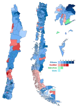 According to the Constitution, primaries are voluntary but its results are binding.[6] Sebastián Piñera won the Chile Vamos primary with 58% of the vote while Beatriz Sánchez became the Broad Front (Frente Amplio) nominee with nearly 68%.[7]