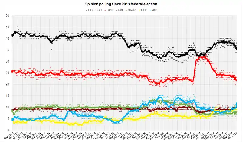 In January 2017, party leader Sigmar Gabriel recommended Martin Schulz, the former President of the European Parliament, as their leader and chancellor candidate.[lower-alpha 1] The party substantially increased its support as a result; however, the CDU afterward regained its lead, with polls generally showing a 13–16% lead over the SPD.
