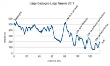 The first edition of Liège–Bastogne–Liège Femmes, a road cycling one-day race in Belgium, was held on 23 April 2017. It was the eighth event of the 2017 UCI Women's World Tour. The race started in Bastogne and finished in Ans, containing four categorized climbs and covering a total distance of 135.5 km.[1] 139 riders started the race, 98 finished.[2]