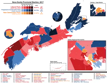 - ↑ Woodbury, Richard (April 30, 2017). "Nova Scotia election to be held Tuesday, May 30". CBC News. Archived from the original on November 12, 2020. Retrieved April 30, 2017.