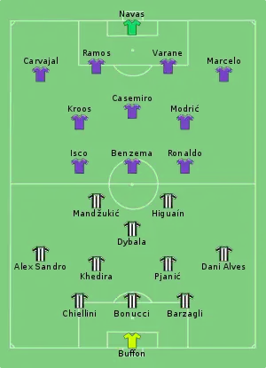- 1 2 3 "Tactical Line-ups – Final – Saturday 3 June 2017" (PDF). UEFA.com. Union of European Football Associations. 3 June 2017. Retrieved 3 June 2017.
