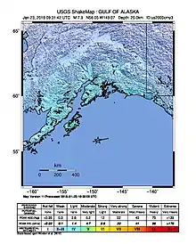 - ↑ "Magnitude 7.9 Offshore Kodiak". Alaska Earthquake Center. Archived from the original on January 28, 2018. Retrieved January 27, 2018.