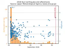 - ↑ "震度データベース検索 (地震別検索結果)" [Seismic intensity database search (search results by earthquake)] (in Japanese). Japan Meteorological Agency. Archived from the original on 8 September 2018. Retrieved 3 December 2018.