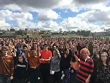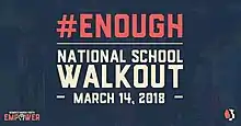 The Enough! National School Walkout[12] was a walkout planned by organizers of the Students' March, that occurred on March 14, in response to the Stoneman Douglas High School shooting. The protest had students, parents, and gun control students leaving schools for seventeen minutes (one minute for each person who died during the shooting) starting at 10:00 a.m. in their respective time zone.[13][14] The protest was held exactly one month after the Stoneman Douglas shooting.[15][16] The American Civil Liberties Union (ACLU) supported the student's activism.[17]