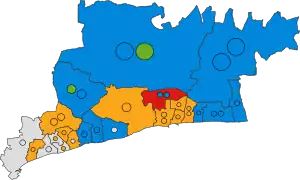 Last election 5 seats, 13.7% 42 seats, 41.6% 2 seats, 7.7%