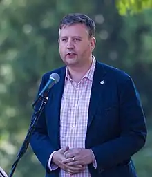 On May 10, incumbent MP Kennedy Stewart publicly revealed that he was considering a run for mayor of Vancouver in the city's 2018 elections.[3] Stewart formally confirmed his candidacy for Vancouver mayor on May 14, announcing that he would resign his seat in Parliament before the election.[4]