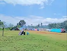 The government of North Maluku declared a state of emergency for 7 days, starting from 15 July to 21 July.[26] It was later extended for another 7 days.[27] North Maluku's government sent tents and basic needs to the affected residents.[28] The local transportation department sent 13 tonnes of logistics to the camps.[29] A total of 500 "impromptu toilets" were also built around the camps.[30]