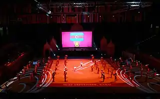The 2019 Rhythmic Gymnastics World Championships were held in Baku, Azerbaijan from 16 to 22 September 2019.[1] The competition took place at the National Gymnastics Arena and served as a qualifier for the 2020 Olympic Games.[2] There were Olympic berths awarded to 16 individuals and 5 groups.[3] There were 301 participating athletes from 61 countries.[4]