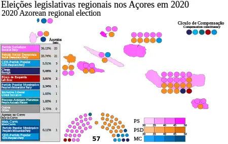 The 2020 Azorean regional election was held on 25 October 2020,[3] to determine the composition of the Legislative Assembly of the Autonomous Region of the Azores. All 57 members of the assembly were up for election.