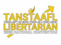 In early 2019, the Libertarian Party held a contest, allowing members to decide the 2020 convention theme, charging $5 a vote.[27] On April 11, it was announced that the winning theme was "TANSTAAFL",[28] an acronym for "There Ain't No Such Thing As a Free Lunch", a libertarian economic concept popularized by American writer Robert Heinlein and subsequently Chicagoan school economist Milton Friedman.[29] The phrase was also embodied in the Libertarian Party's first logo, adopted in 1972, in an image known as the "Libersign".[30]