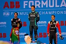 Ma Qinghua would be the next one to retire, crashing at turn 3. Meanwhile in the front, Jean-Éric Vergne would battle his teammate da Costa, in an attempt to overtake Buemi, which was the goal Techeetah were trying to accomplish. Da Costa would eventually stay ahead of Vergne and would soon overtake Buemi himself, moving up to third place.[16] Daniel Abt would retire in pits after he spun at turn 1 on lap 29.[17] Da Costa would then go on to chase Bird, who would later crash while in attack mode phase at turn 3 during lap 32. Bird got back going, but crashed again in Foro Sol, where he stayed parked for the rest of the race.[15] Stoffel Vandoorne would also hit the barriers on the penultimate lap, eventually finishing the race a lap down with a severely damaged car.[16] Vandoorne was not classified in the results, despite crossing the finish line while pitting.[19]