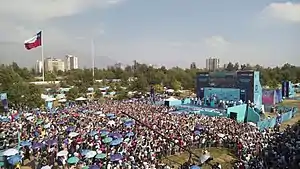 Ahead of the race, in November 2019, concerns were raised about the race, due to the 2019–20 Chilean protests, which had seen postponements and suspensions of football fixtures earlier in the month, with the APEC and COP25 summits, which had been set to be hosted in the city also being cancelled, while the Copa Libertadores final was moved to Lima, Peru and Rally Chile was cancelled.[5] In spite of the concerns, the event was officially launched of 13 November, while Formula E would continue to monitor the social-political situation in the city.[6] Formula E later reaffirmed its commitment to racing the city, while it was later revealed that unlike Rally Chile, the race was privately funded, with the money needed to put on the race in Santiago's O'Higgins Park coming from the event organisers, without government funding.[7]