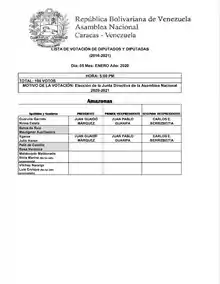 - 1 2 MonitorProdavinci (5 January 2020). "¿Qué pasó con la elección de la directiva de la Asamblea Nacional?". Prodavinci (in Spanish). Retrieved 26 January 2020.