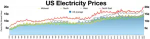 Electricity prices rose in the United States through 2021 and 2022 mostly from the increase in natural gas prices which makes up the 35% of electricity generated in the United States [32]