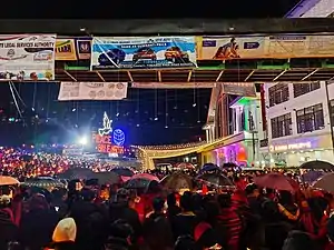 The Eastern Nagaland People’s Organisation (ENPO), which represents six tribes, withdrew from the ongoing annual Hornbill Festival.[11] The Nagas hoisted black flags on all its morungs at the festival while the Konyaks decided to have its cultural troupe abstain from participating at the festival. This was followed by the other Naga cultural troupes also abstaining on 5 December. Two minutes of silence were also observed at the venue on the same day.[23][24] Later on the evening of 5 December, the people of Kohima observed a power blackout for 30 minutes to mourn the death of the civilians.[23][24] Candlelight marches were organised in Kohima, Dimapur and other towns on the same day.[11] A six-hour shutdown was also called by the Naga Students' Federation.[25][26] On 7 December, the Government of Nagaland announced that it would suspend all activities at the Hornbill Festival.[27]