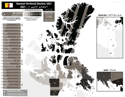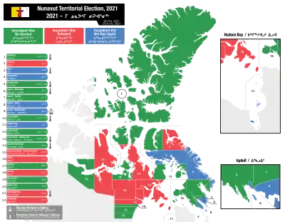 - ↑ "Nunavut elects 11 new members amid low voter turnout in territorial election". October 26, 2021.