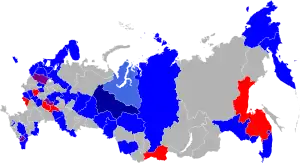 The 2021 Russian regional elections took place in Russia on Sunday, 19 September 2021 with possibility of voting on 17 and 18 September provided by the electoral authorities.[1] There will be the legislative election for the 8th State Duma, ten gubernatorial elections, 39 regional parliamentary elections, and many elections on the municipal and local level.
