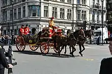 The Queen travelled from Buckingham Palace to the Palace of Westminster.[19] She was joined by her son Prince Charles and his wife Camilla.[20] The MP Marcus Jones was taken in the opposite direction as 'hostage' for the duration.[21]