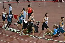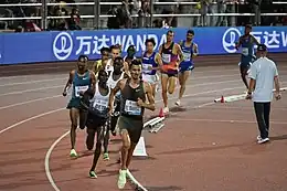 Athletes competing in the 1500 metres. The winner, Jakob Ingebrigtsen, is shown in the center.