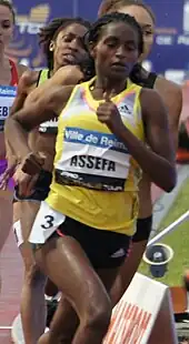 - ↑ Assefa has recorded a personal best time of 1:59.24 for the 800-metre race.[8]