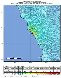 - 1 2 3 "M 5.5 - 11 km W of San Bartolo, Peru". earthquake.usgs.gov. 12 May 2022. Archived from the original on 12 May 2022. Retrieved 15 May 2022.
