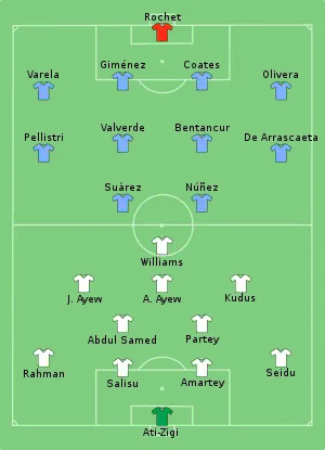 - ↑ "Ghana 0 Uruguay 2". BBC Sport. 2 December 2022. Retrieved 2 December 2022.