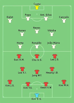 - ↑ South Korea manager Paulo Bento was suspended for the match due to his sending off in South Korea's match against Ghana. Assistant manager Sérgio Costa filled in as manager.